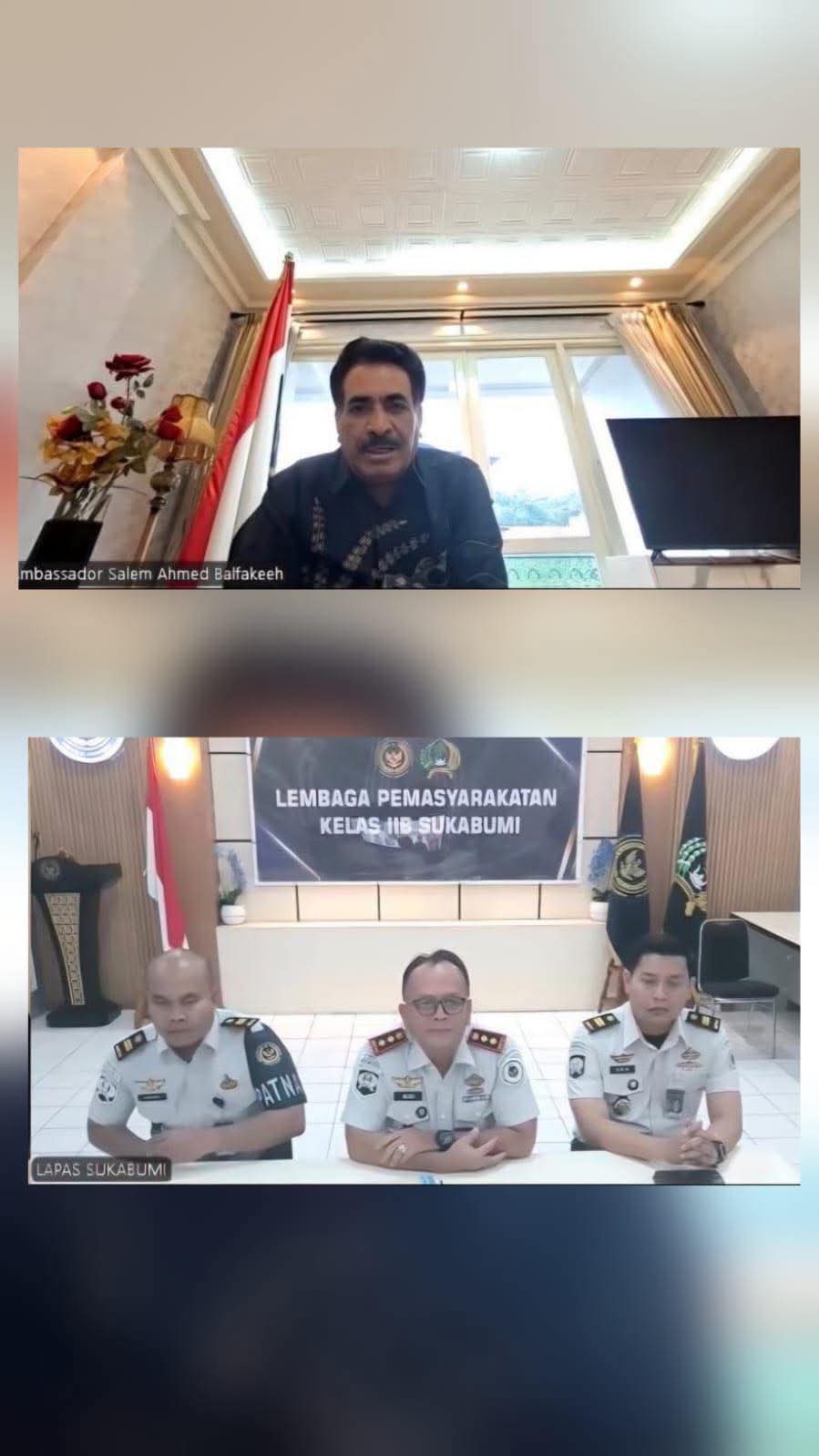 Duta Besar Yaman Untuk Indonesia, Salim Ahmad Balfaqih, pada tanggal 7 April 2026, megadakan rapat via video konferensi dengan pejabat salah satu kantor lembaga pemasyarakatan di Indonesia. Hal tersebut untuk menindaklanjuti kondisi warga Yaman yang ada di tempat mereka.
